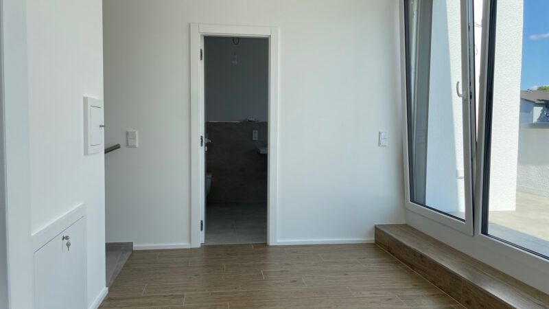 Das Dachgeschoss bietet einen weiteren, vielseitig nutzbaren Raum sowie ein zweites Badezimmer. Von hier aus gelangt man auf die großzügige Dachterrasse mit ca. 23 m², die zum Entspannen einlädt.
