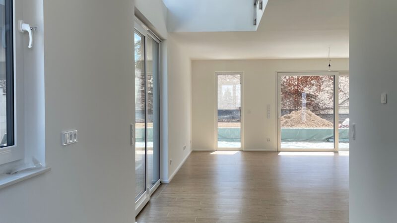 Im Erdgeschoss befindet sich der offene Wohn- und Essbereich mit ca. 46 m² und direktem Zugang zur Süd-West-Terrasse und zum Garten.