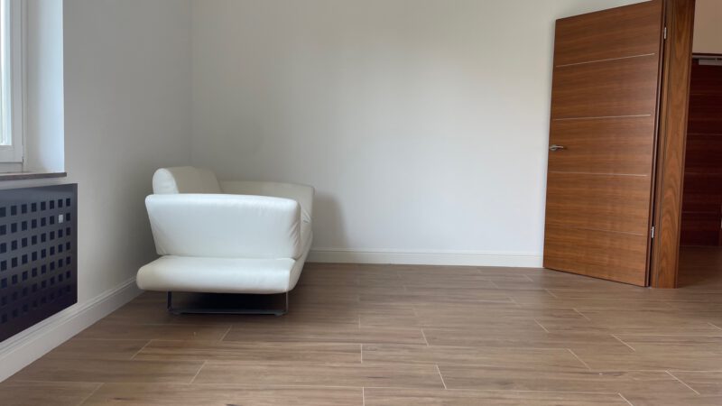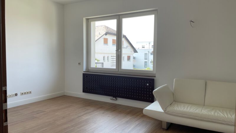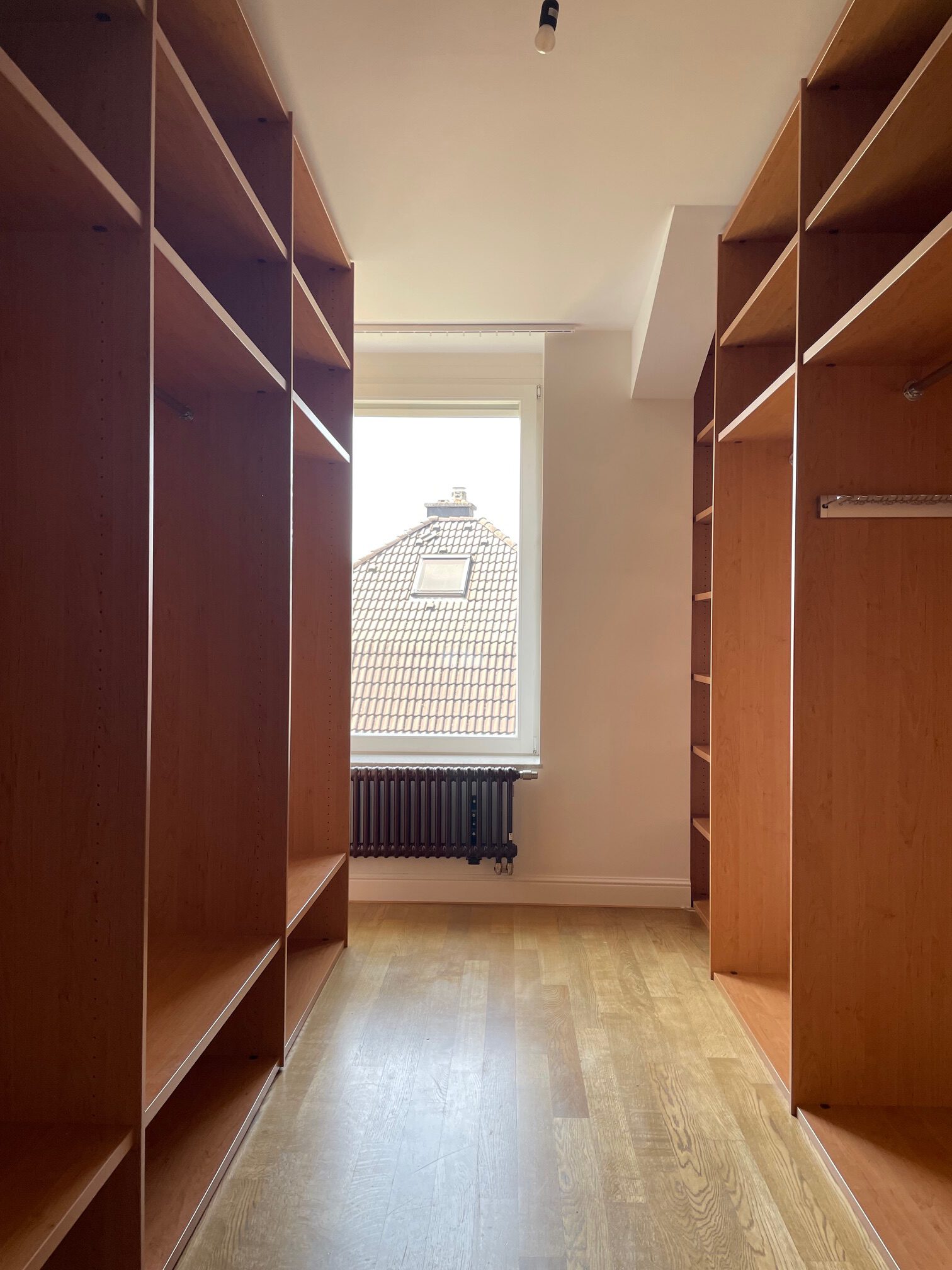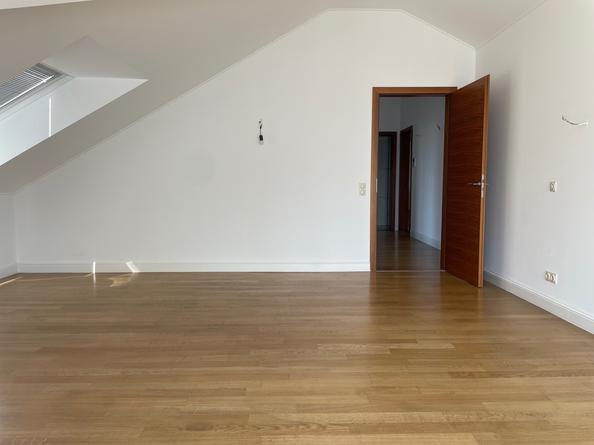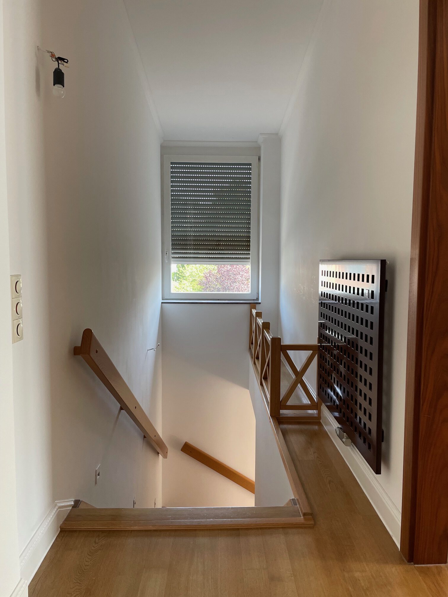 Über eine stilvolle Holztreppe gelangen Sie in die zweite Wohnebene. Dort erwarten Sie drei weitere Schlafzimmer, eines davon mit Balkon, sowie ein großzügiges Ankleidezimmer.