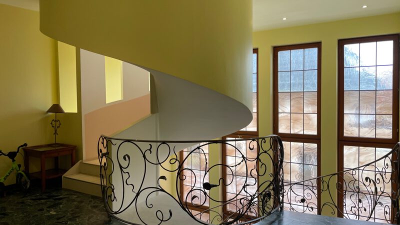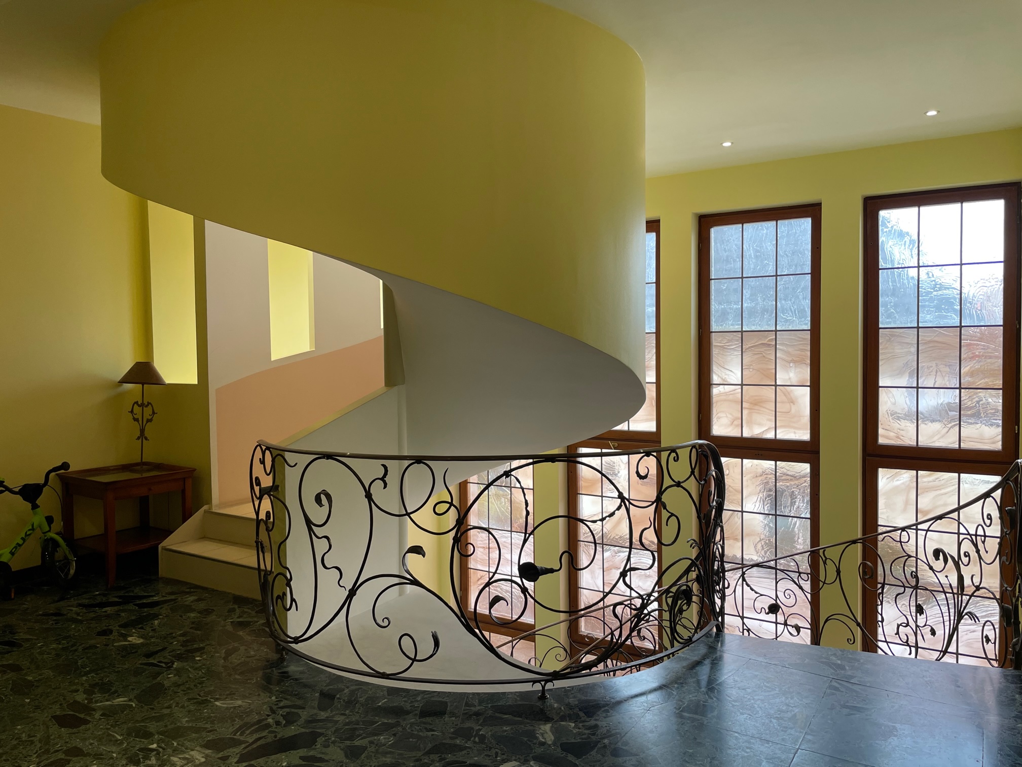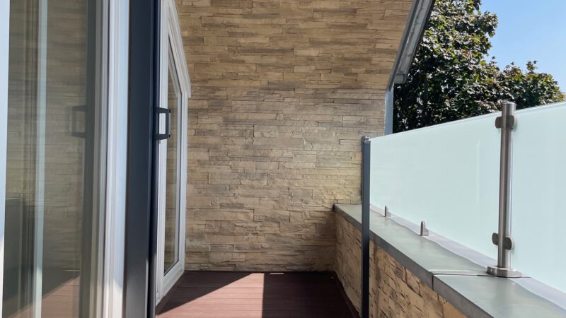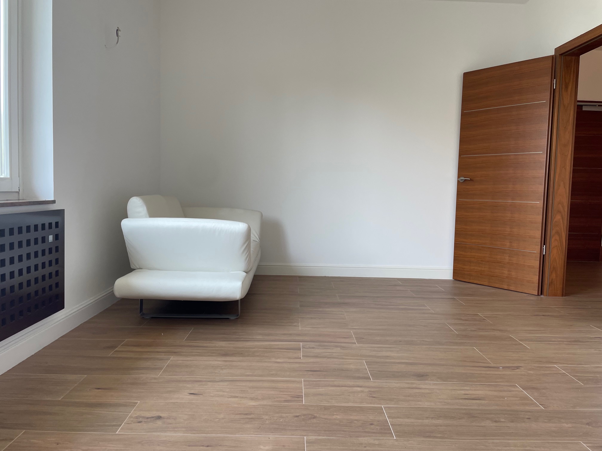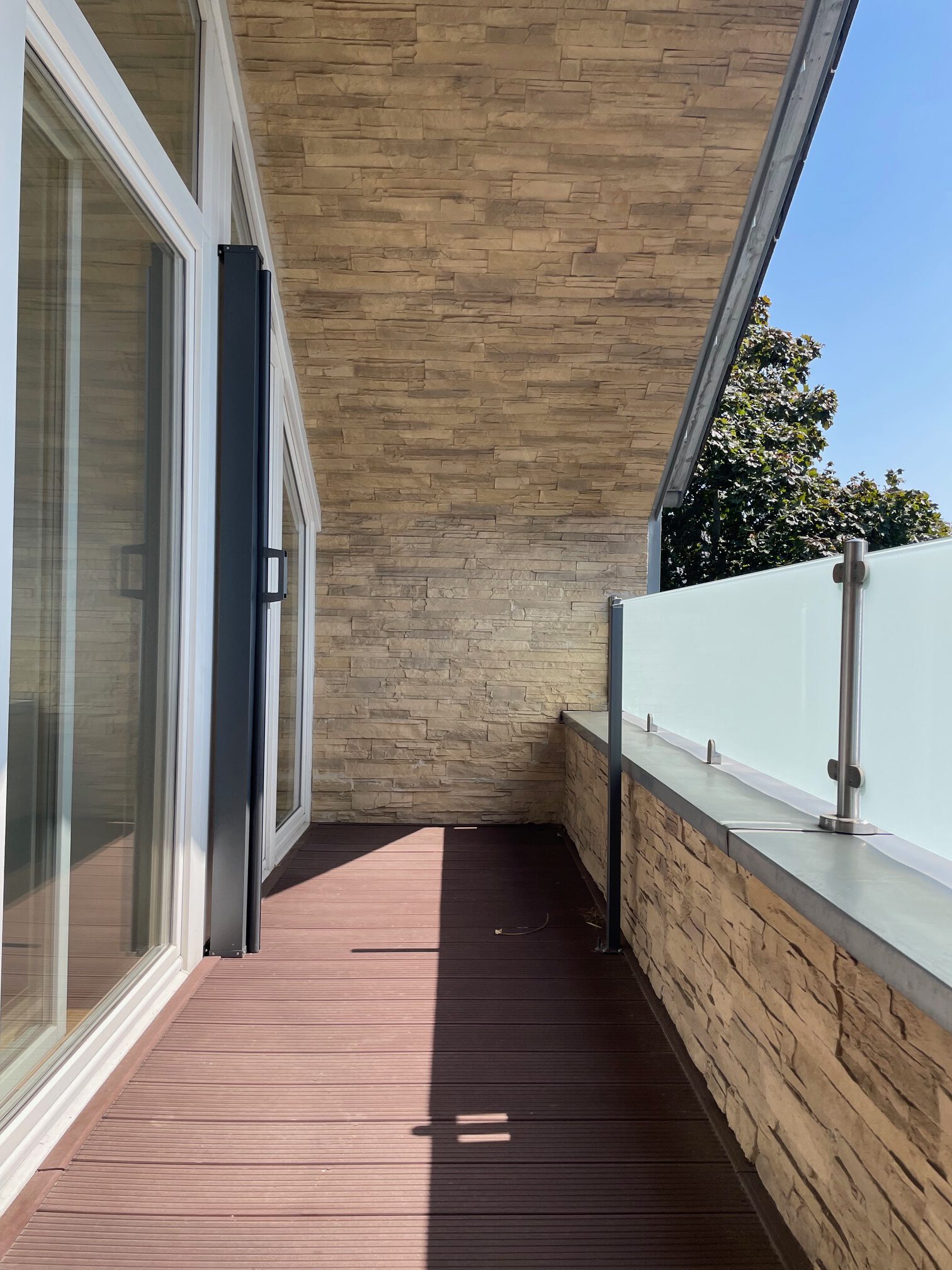 Über eine stilvolle Holztreppe gelangen Sie in die zweite Wohnebene. Dort erwarten Sie drei weitere Schlafzimmer, eines davon mit Balkon, sowie ein großzügiges Ankleidezimmer.