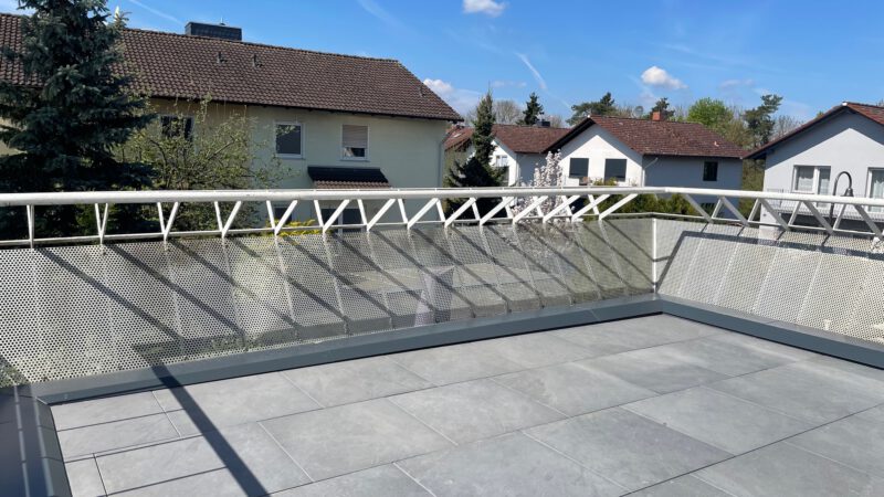 Der zur Wohnung gehörende PKW-Stellplatz befindet sich direkt am Haus und ist durch die Architektur teilweise überdacht.